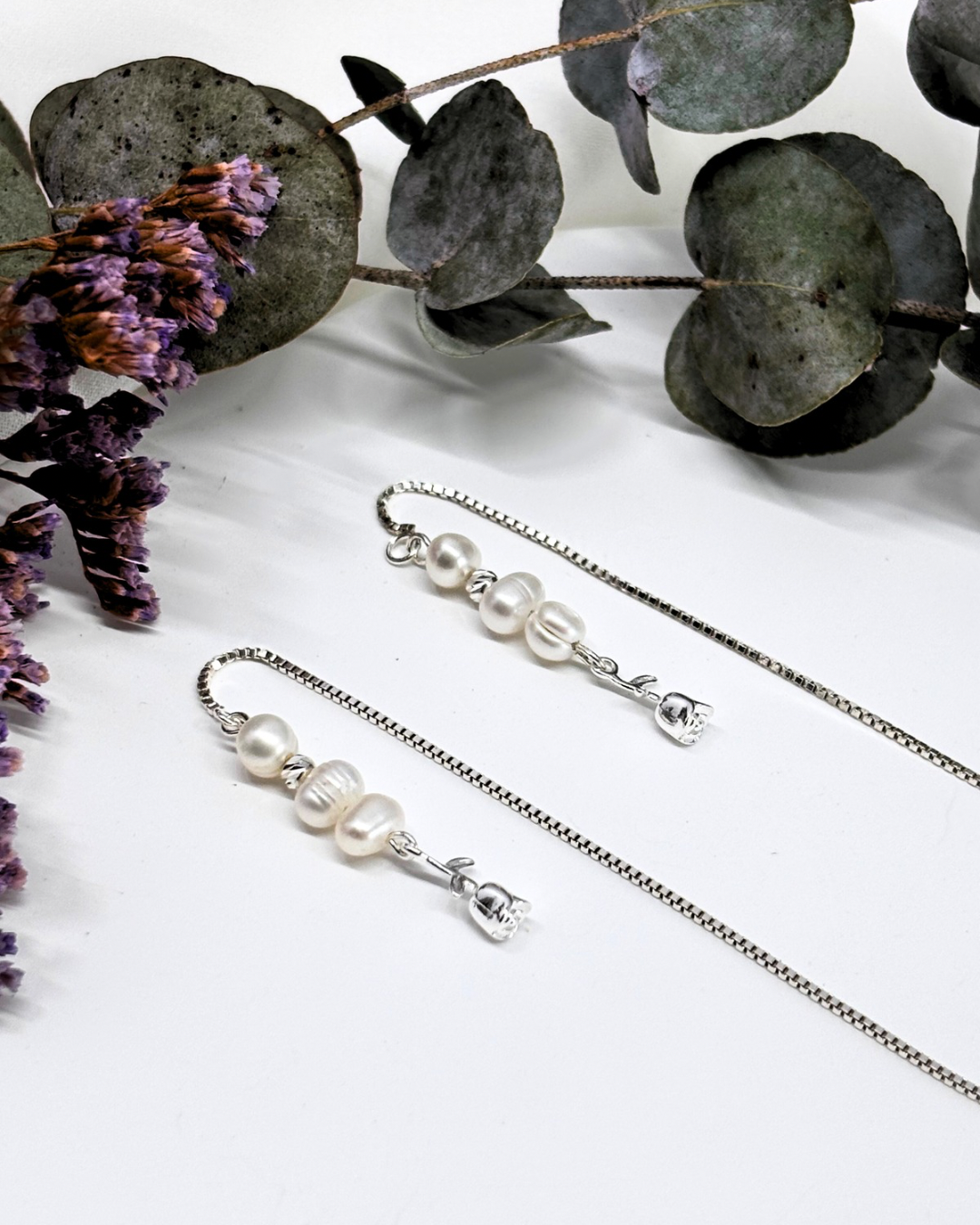 Pre-Order! 30% OFF | עגיל מדליין - כסף 925 פנינים ותליון ורד