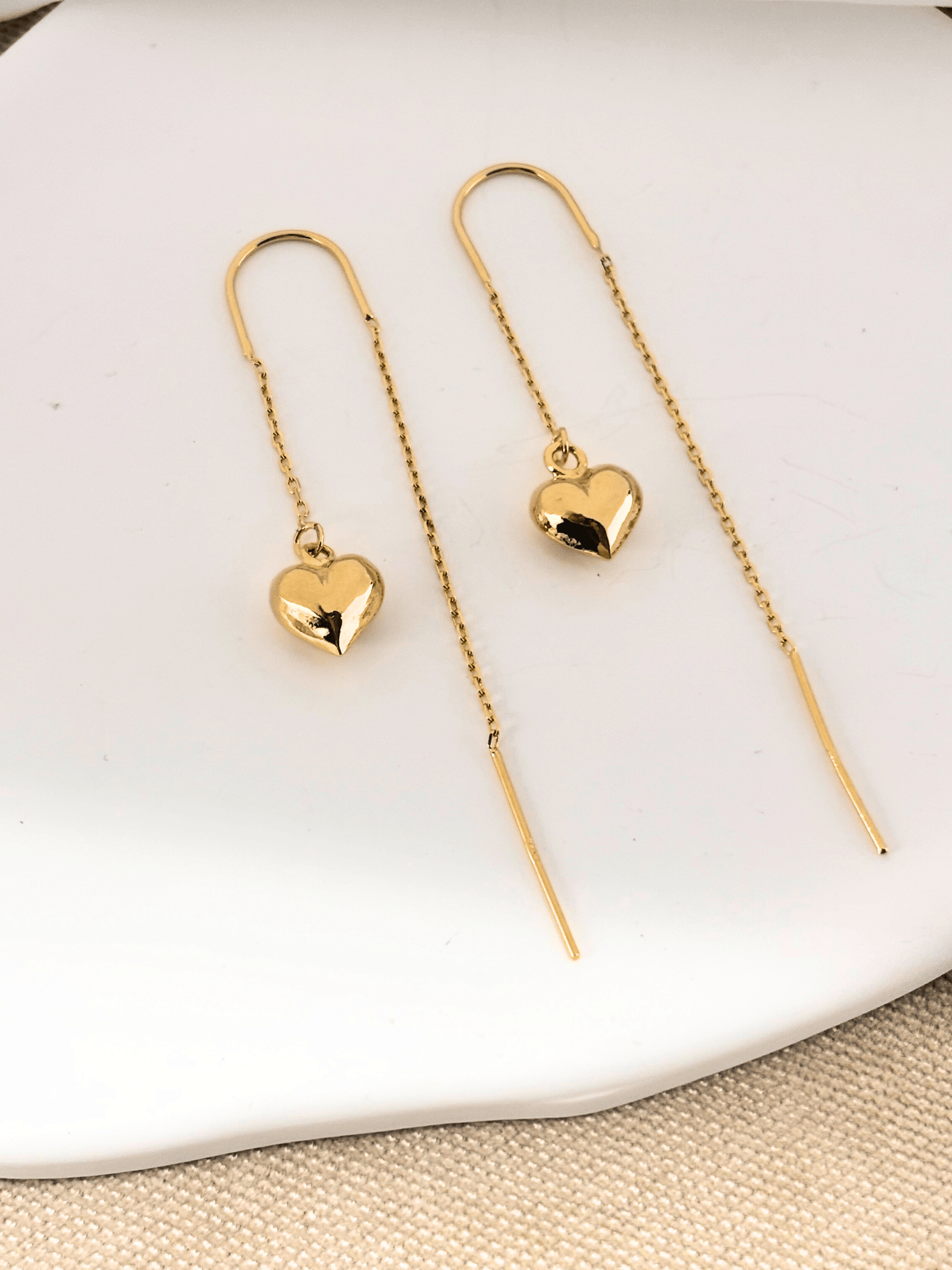 עגיל עדין וקלאסי עם תליון לב תלת מימד, עגיל שיראה טוב עם לוק יומיומי או שמלה קלאסית לאירוע.